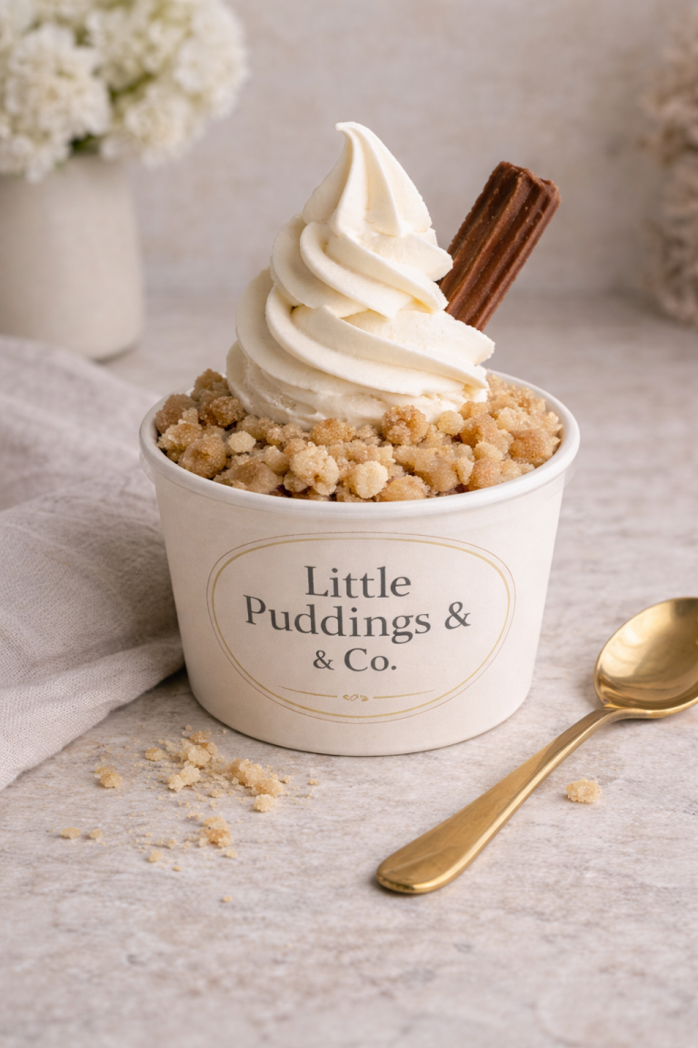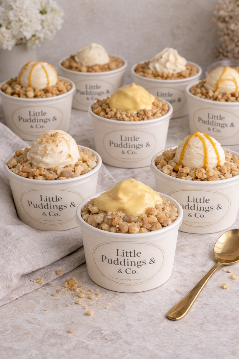 Tender, slow-cooked apples infused with warming spices, crowned with our rich, golden crumble and baked to perfection. Served hot and irresistibly comforting a timeless favourite with a Little Puddings & Co twist.